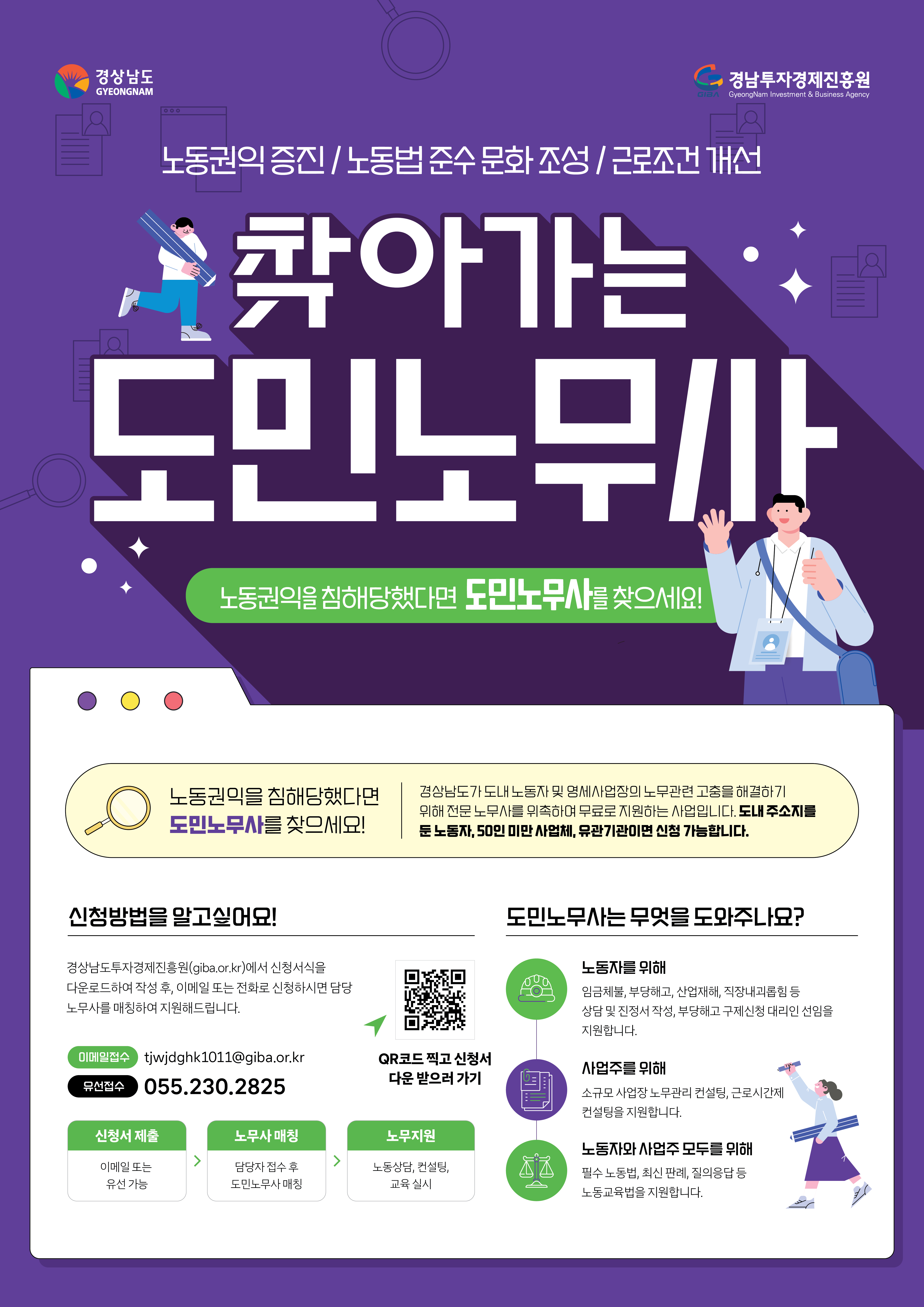 '찾아가는 도민노무사제'를 운영하오니 많은 관심과 참여 부탁드립니다.