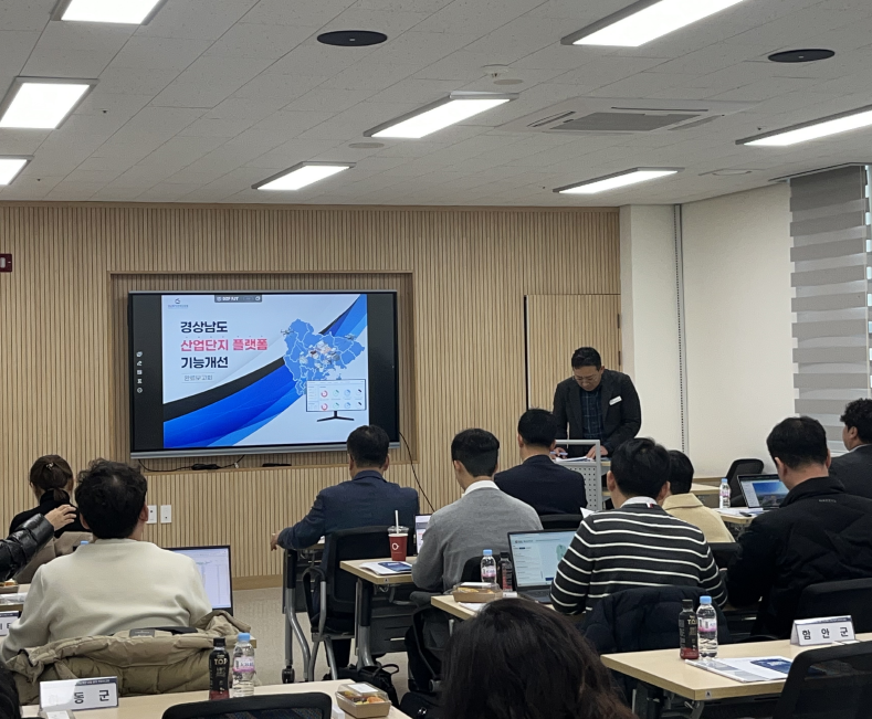 이번 보고회에는 경남도‧시군 산업단지 담당자, 수행기관 등 관계자 40여 명이 참석한 가운데 플랫폼 시연, 신규 기능 소개, 활용 교육, 질의응답, 2025년 이후 개발 방향 논의가 진행됐다.
